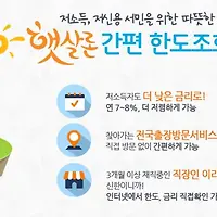 햇살론은 정부지원으로 만들어진 저신용층, 저소득층 서민을 위한 서민전용금융상품인데요. 다른 대부업체들의 대출상품에 비해서 많이 저렴한 금리로 이용이 가능해서 많은 분들이 이용을 하고 있는 상품입니다.
